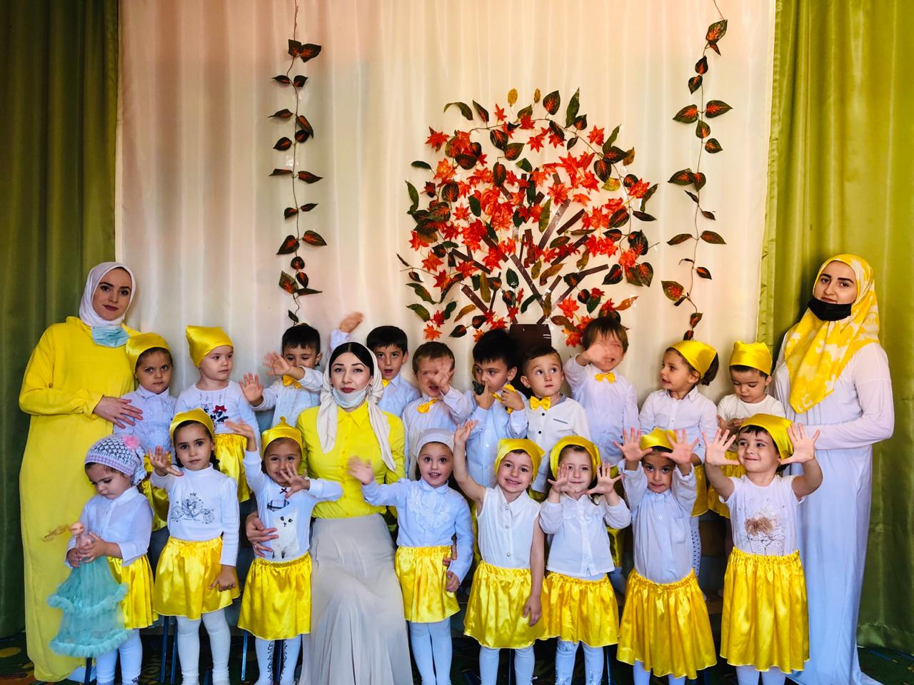 листьями, шарами, осенними цветами. Воспитанники групп подготовили много разных песен, танцев, стихов.
